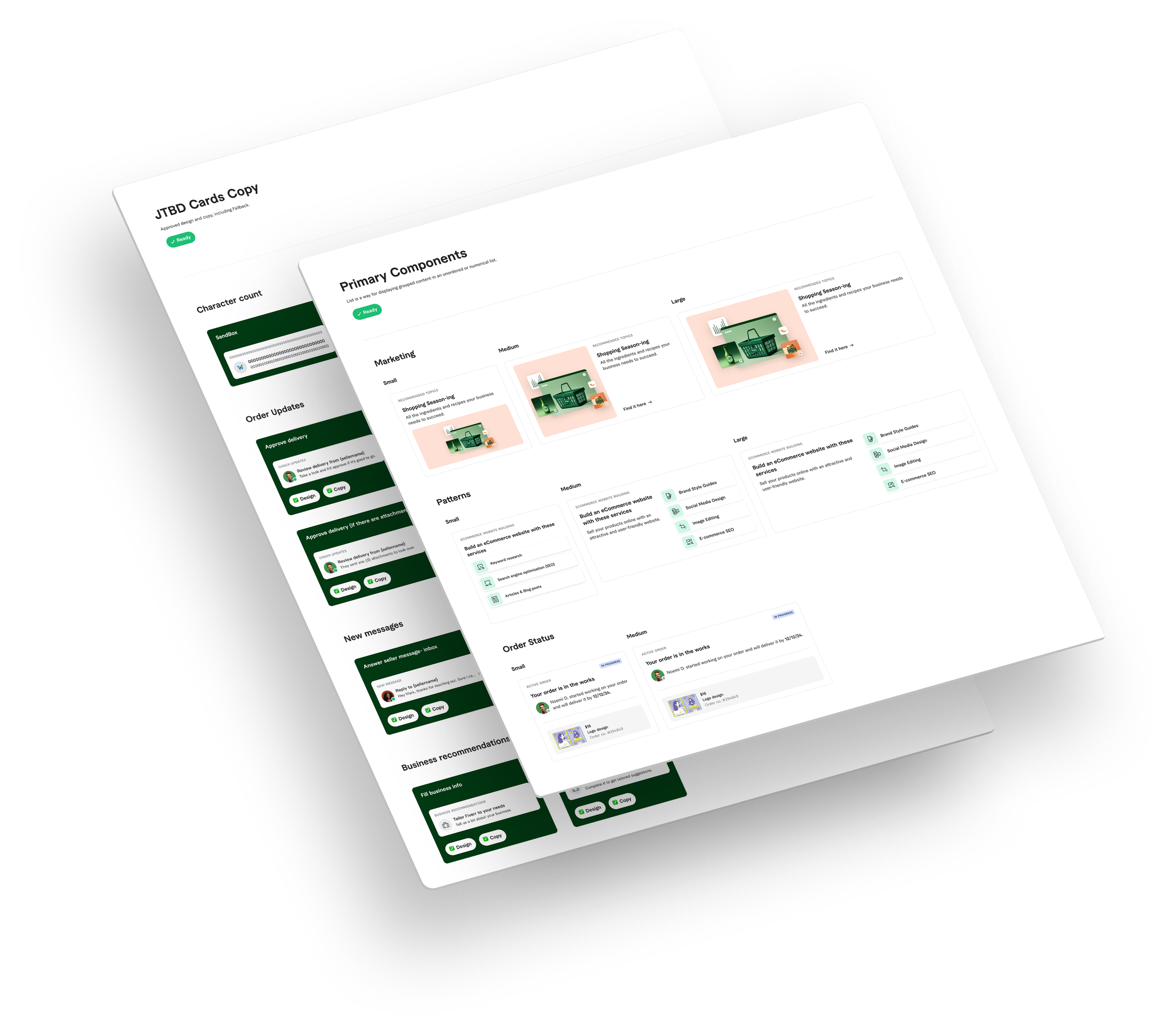 The result was a modular content system built around three core pillars — a JTBD component surfacing the buyer's most urgent task, a Primary component with dynamic marketing or service content, and a "Pick up where you left off" carousel that adapts tabs based on browsing and purchase history.